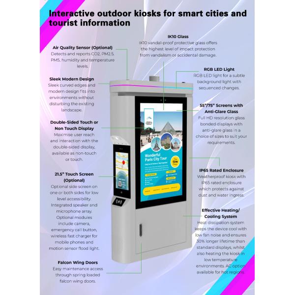 55" Or 75" 4K Smart City LCD Advertising Kiosk with 22" Touch Screen